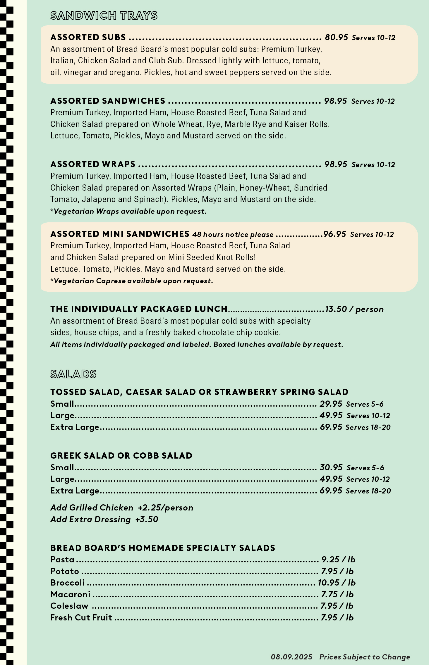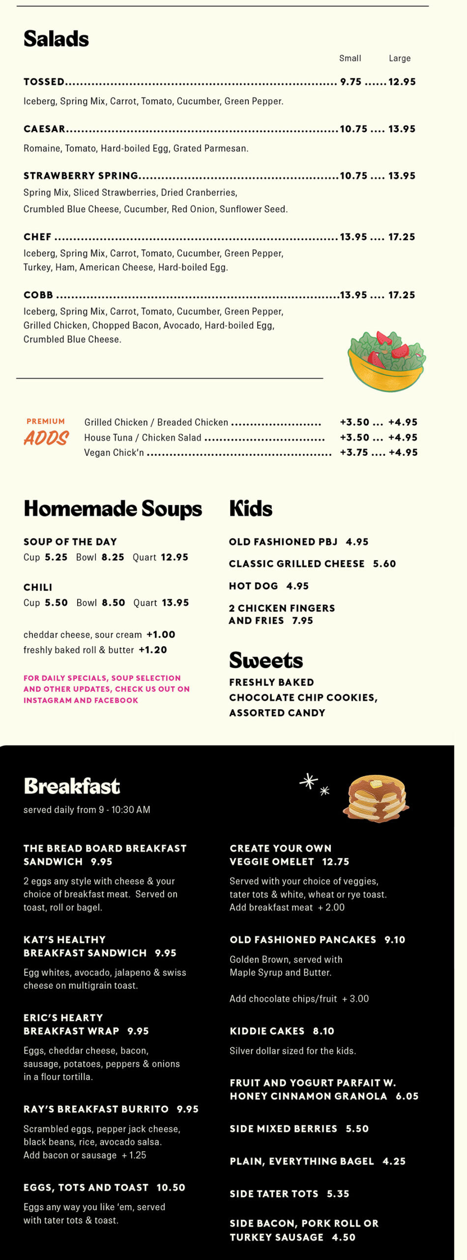 The Bread Board Plus, a spin-off of one of the original “Jersey Mike’s”, was founded over 30 years ago and has been a staple in Haddonfield, New Jersey ever since. We pride ourselves on serving only the highest quality, freshest products and are best known for our “sliced to order” cold subs and our oversized sandwiches. We cater to many of Haddonfield’s local businesses and are well known as a family friendly hangout. The Bread Board Plus is open for takeout, delivery and catering seven days a week. Stop in today, where fast, friendly service is our reputation, and customer satisfaction is our top priority. We look forward to serving you!